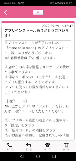 マノ ネラ マノのアプリをSNSを通じてお友達に紹介する事ができます。