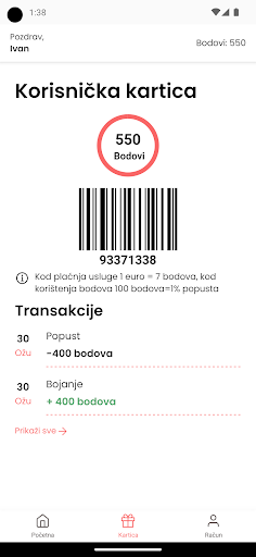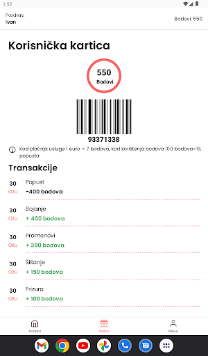 Skupljanje nagradnih bodova za usluge salona