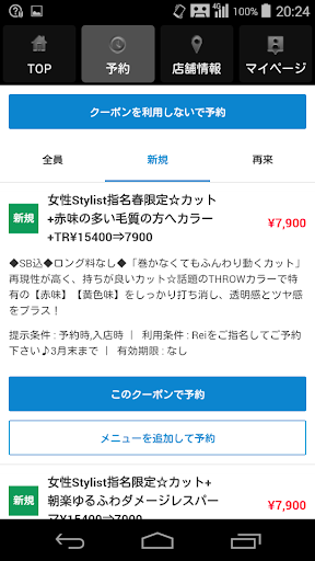 お得なクーポンが配信されます。ネット予約時にクーポン利用での予約も可能なので来店時もスムーズに施術頂けます。