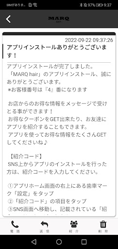 マルクヘアーのアプリをSNSを通じてお友達に紹介する事ができます。