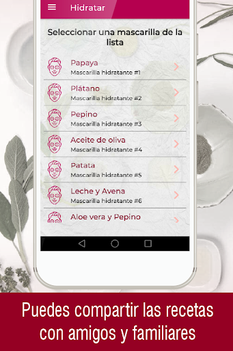 Tu aplicación de mascarillas caseras de belleza, es muy fácil de usar, rápida, con una interfaz de usuario intuitiva.