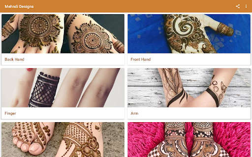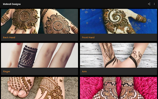 Mehndi Designs 2022 has all the latest mehndi designs for all cultures. This app includes pakistani mehndi designs, indian mehndi designs, arabic mehndi designs etc.