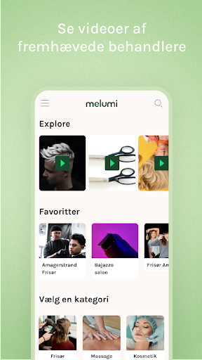 Med Melumi app kan du med få klik finde en tid og en Melumi behandler der passer dig – om du leder efter en frisør, barber, massør, terapeut, neglesalon eller kosmetolog. Find en tæt på din bopæl, arbejde eller når du er på farten.