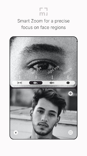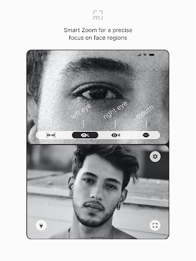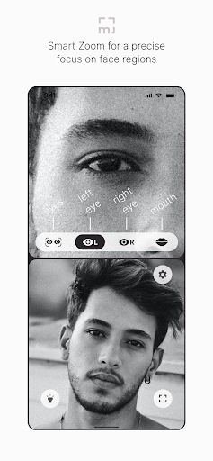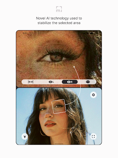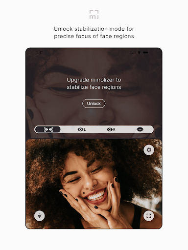 Receive stabilized mirror with technology of a medical product. Select the region of your face that you focus on and zoom in and out.