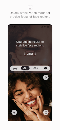Simply select the region of your face that you want to see and Mirrolizer will keep it in focus – no matter if the head or the camera is moving.