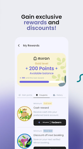 Earn 40 points just for completing your profile, and another 40 points for every booking you make. Plus, leave a review or share photos of your experience and earn additional 30 points. With the potential to earn up to 300 points, you can receive amazing rewards! Don’t miss out on the chance to elevate your beauty routine with Mirron – download the app today!