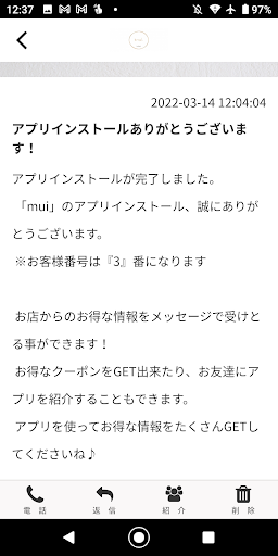 muiのアプリをSNSを通じてお友達に紹介する事ができます。