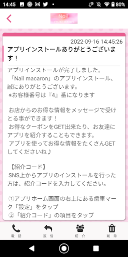 Nail macaronのアプリをSNSを通じてお友達に紹介する事ができます。