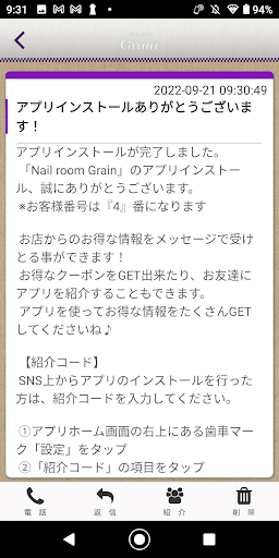 Nail GrainのアプリをSNSを通じてお友達に紹介する事ができます。