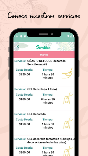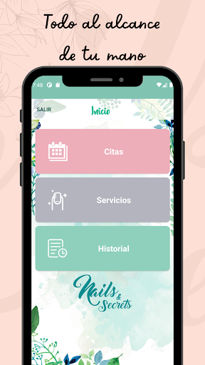 Aplicación que brinda a las clientas de Nails & Secrets la posibilidad de agendar citas a través del celular.