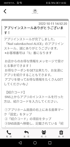ALICEのアプリをSNSを通じてお友達に紹介する事ができます。