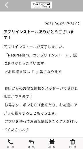 NaturealismのアプリをSNSを通じてお友達に紹介する事ができます。