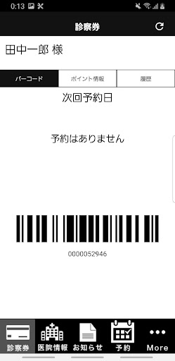 バーコードをかざすだけで受付出来るチェックイン機能、次回ご予約日時表示など、カードレスな診察券としてご活用頂けます。