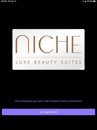 The Niche Luxe Beauty Suites mobile app is for clients of tenant businesses to book appointments, communicate, confirm and pay for hair, nail, and massage services provided by the business owners that reside in a location.