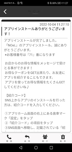 NOeLのアプリをSNSを通じてお友達に紹介する事ができます。