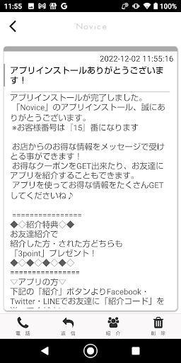 NoviceのアプリをSNSを通じてお友達に紹介する事ができます。