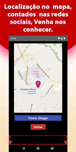 também encontra pagina do face book, você poderá fazer ligação para a loja direto do app.