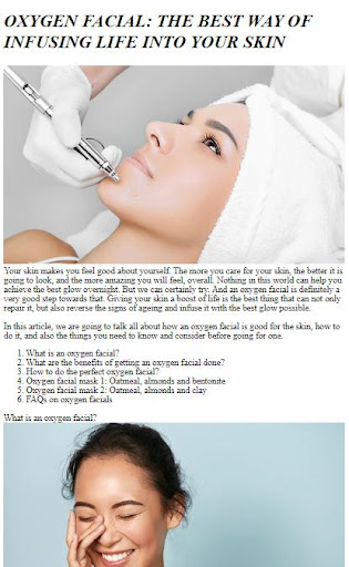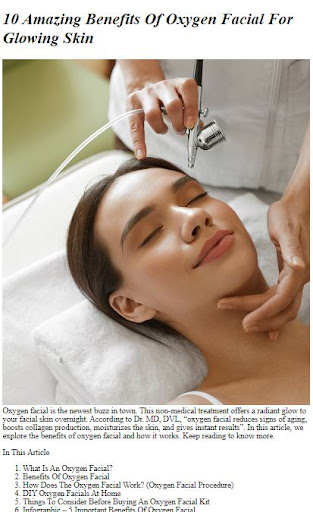 Unveil your most radiant and glowing skin with the transformative power of Oxygen Facial. Our ultimate app is your gateway to achieving a luminous complexion that exudes confidence. Say goodbye to dull and tired-looking skin and hello to a world of expert tips, techniques, and professional guidance that will help you unlock your skin’s true potential. Whether you’re a skincare enthusiast or looking to rejuvenate your complexion, our app is your go-to resource for all things Oxygen Facial.