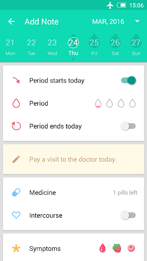 Also you can use My Calendar as contraceptive pill reminder, V-ring reminder, patch and injection reminder, make your life much easy and safe.
