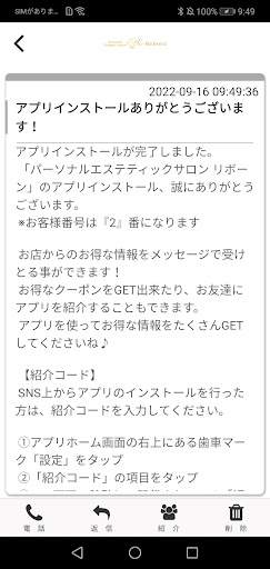 ReBornのアプリをSNSを通じてお友達に紹介する事ができます。