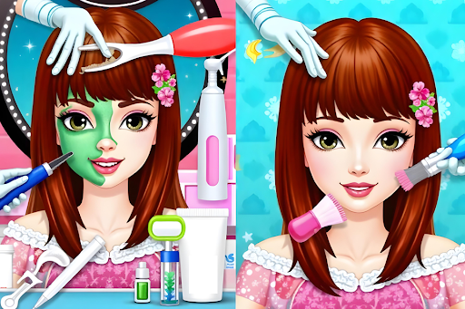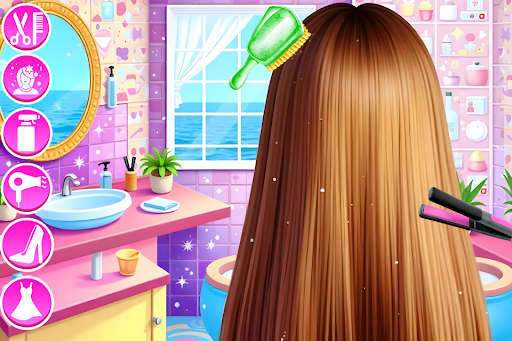 Become a hairdresser in a princess hair salon and give a glow up to princess glam chic girls. Make a reservation for brides to get perfect hairstyles done at advances makeup artist bookings. Their hair is so damaged with split ends, get them your special hair treatment. Wash their hair and apply a hair mask and shampoo to make their hair as smooth as silky. Dry them with a hair dryer and then do trimming. Use a variety of hair tools like combs, brushes, hair pins, extensions, hair straightener, curler and many more. Give high school girls a beautiful haircut by using these tools like french bob cut, long layers, hair with bangs, pixie cut, braids. Make your hair princess happy with fashion hairstyles in hair makeover games.