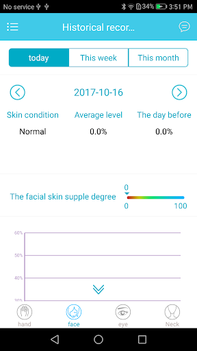 The app keeps an accurate record of each skin moisture measurement, with which it automatically generates a chart for an at-glance overview of how your skin has changed over time.
