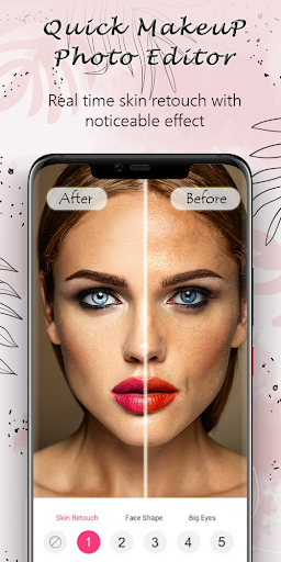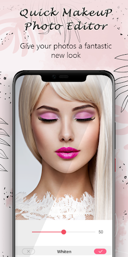 Quick makeup photo editor is an all-in-one makeover and photo editor app to retouch selfies or any of your photos. Throw away the annoying beauty steps, we provide a significant feature to automatically beautify the picture function so that your photos are more beautiful natural, and more realistic and take your pics art experience to the next level. Retouch photos in the picture editor with cool effects & filters for selfies. Blemish remover, teeth whitener, skin brightener & so many more makeup & beauty filters to improve your selfies.