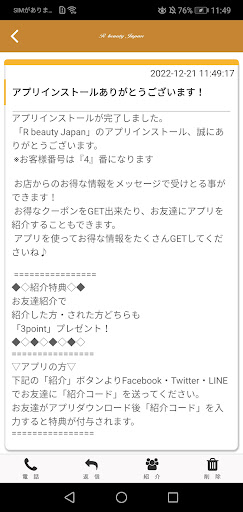 R 美容院のアプリをSNSを通じてお友達に紹介する事ができます。