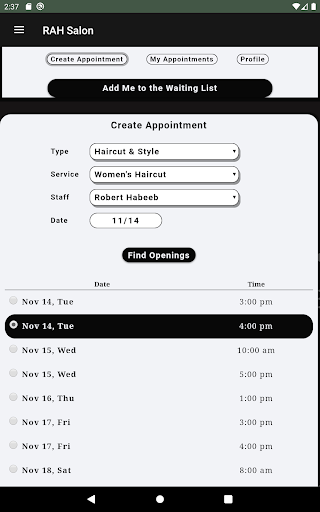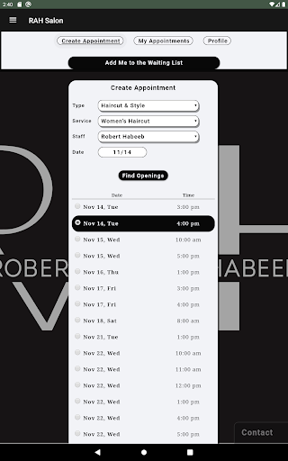 Download the RAH (Robert Andrew Habeeb) Salon App today to schedule your appointments! From this mobile app, you can view my services, book appointments as well as view the salon’s location and contact information. You can also click through my image gallery. Optimize your time and maximize your convenience by booking online from your device anytime, anywhere.