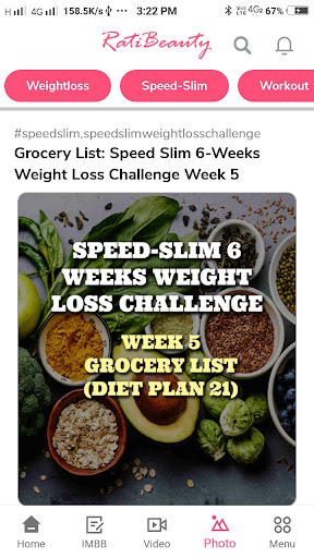 Watch Rati’s diet plan videos and learn how she is losing weight through her diet. Follow her diet plans week by week. The app also offers Speed Slim Fast Weight Loss program for those who want to lose weight in a jiffy. Althrough healthy nutritious meals!