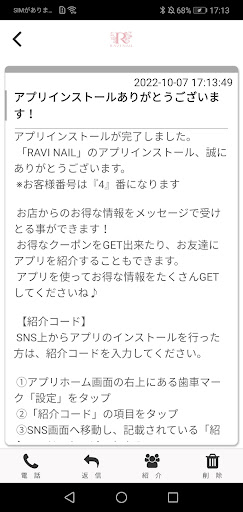 RAVINAILのアプリをSNSを通じてお友達に紹介する事ができます。