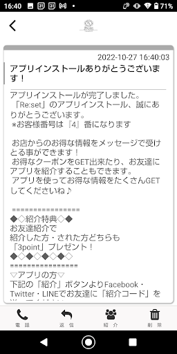 Re:setのアプリをSNSを通じてお友達に紹介する事ができます。