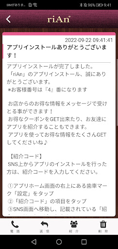 リアンのアプリをSNSを通じてお友達に紹介する事ができます。