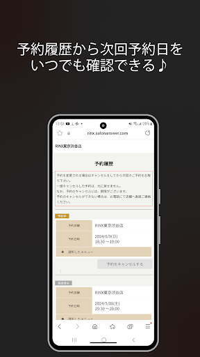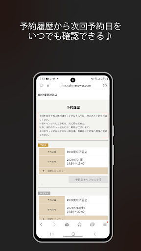 次回予約の日時確認はもちろん、一覧から過去の予約情報が確認できて来店周期管理も安心!