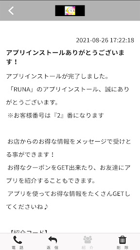 RUNAのアプリをSNSを通じてお友達に紹介する事ができます。