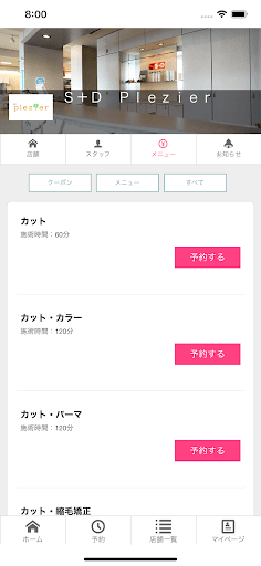 これまでの来店履歴や予約内容、お店からのお知らせをチェック。