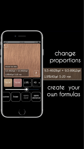 Choose shades from the palette, change the oxidizers, the amount of product, and the program will show how the result will look. S.H.E. Colorist will not allow you to do the wrong things, for example, use the wrong oxidizers, apply the wrong shades to super light blonde (bases).