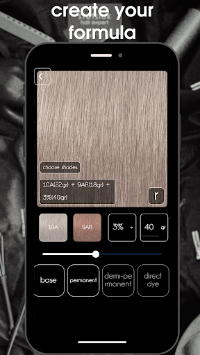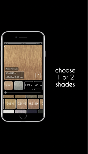 The S.H.E.colorist application will allow you to create shades by mixing two colors from the palette and show the final result on the hair, according to the given parameters: hair type, initial hair color and type of selected hair dye.
