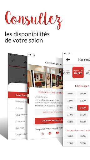 – Trouver le salon le plus proche de chez vous, consulter ses disponibilités et réserver instantanément votre prochain rendez-vous