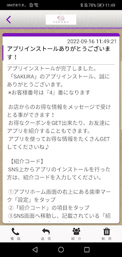SAKURAのアプリをSNSを通じてお友達に紹介する事ができます。