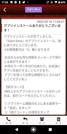 Salon DevaのアプリをSNSを通じてお友達に紹介する事ができます。