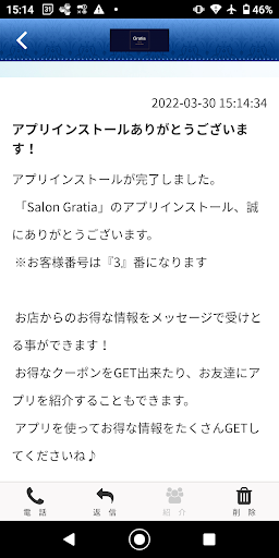 Salon GratiaのアプリをSNSを通じてお友達に紹介する事ができます。