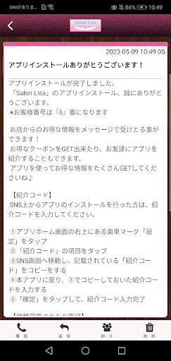 Salon LisaのアプリをSNSを通じてお友達に紹介する事ができます。