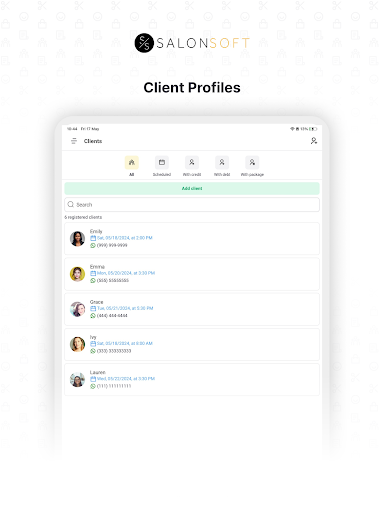 With the Salon Soft Agenda you can register your clients, services and professionals easily, both on your computer and on your cell phone in a synchronized way.