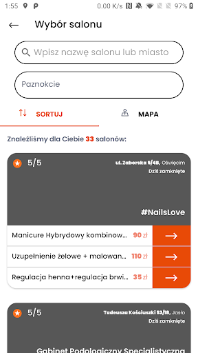 – możliwość zapisu swoich ulubionych salonów, dzięki czemu szybko umówisz się na kolejną wizytę.