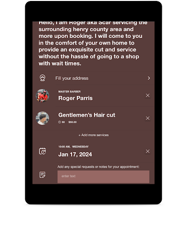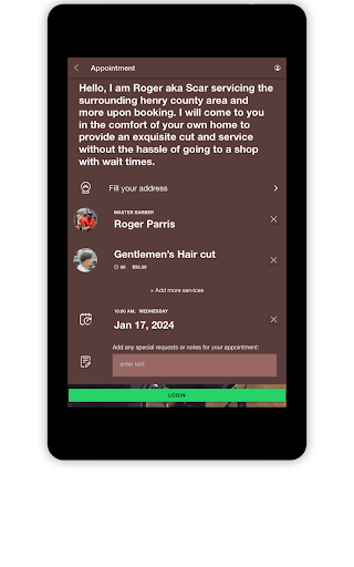 Welcome to Scar’s Exquisite Cuts app! Enjoy easy booking and a great atmosphere with top-notch services. Find the ideal time for haircuts, beard trims, and more, all tailored to your schedule. Get full details on location and hours, and book your next appointment with just a few taps. Download now for a hassle-free grooming experience!