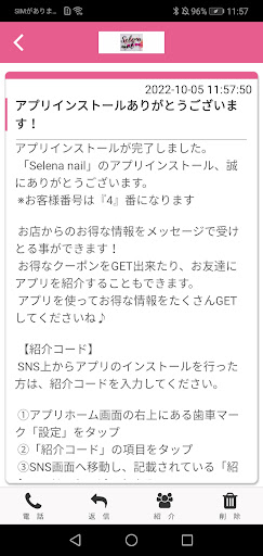 Selena nailのアプリをSNSを通じてお友達に紹介する事ができます。