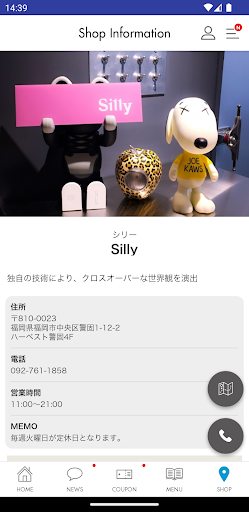 店舗のマップが表示され、地図アプリとも連動しているので、初めてのご来店の時も簡単に見つけることが出来ます。