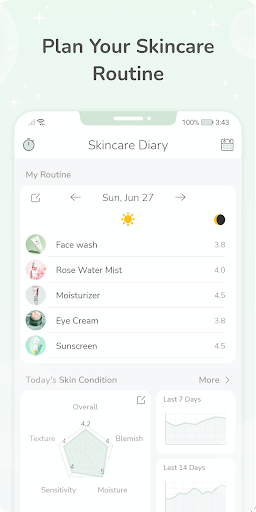 Helps you plan your skincare routine and lets you know which skin care products to use for the day. The app tracks your skin condition, product usage, product expiration dates and help you determine if a product is right for your skin.