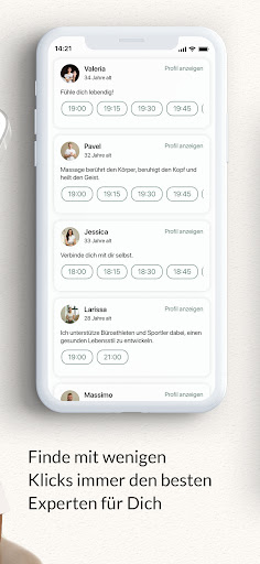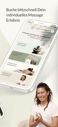 Buche Premium-Massagen ganz einfach zu Dir nach Hause, ins Hotel oder ins Büro! Mit Soulhouse erlebst Du erstklassige Massagen bereits ab 69 EUR. Wann immer Du willst. Wo immer Du willst. Immer beim Massage-Experten Deiner Wahl! Innerhalb von 2 Stunden kann der Experte bei Dir sein. So kannst Du Wellness optimal in Deinen Alltag integrieren. Soulhouse ist Deine App für die besten Massagen der Stadt.